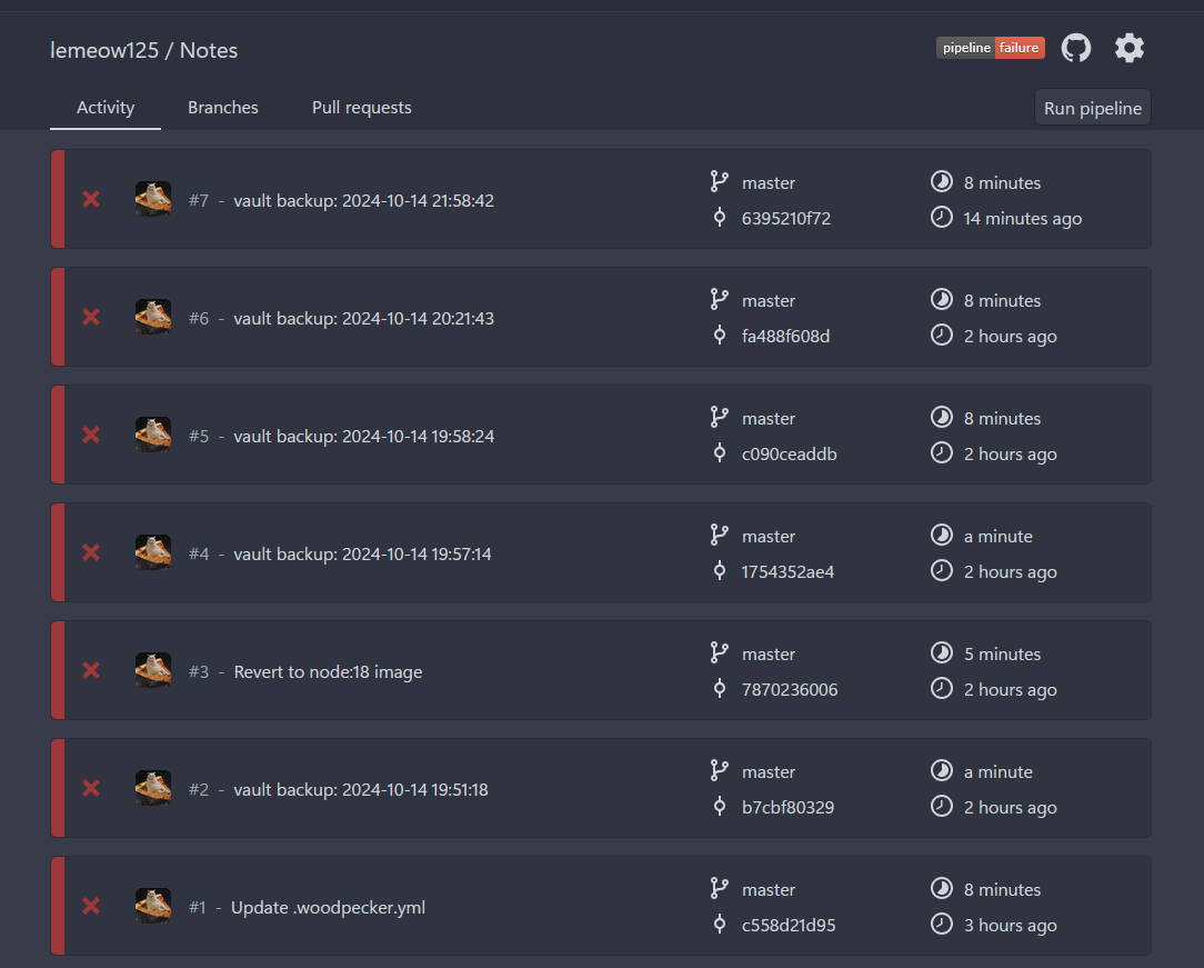 In the essence of self hosting, I've added a Woodpecker CI/CD pipeline which deploys this very site. It's absurd how I went from running wikis on potatoes to managing an overengineered markdown repository, but hey! It works.